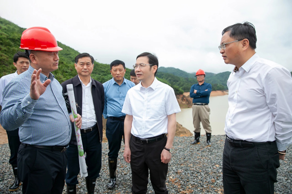 集團(tuán)資訊2021年5月21日上午,鷹潭市委書記黃喜忠深入由我集團(tuán)承建的貴溪市塘灣水庫除險加固工程進(jìn)行實(shí)地調(diào)研,指導(dǎo)在建工程防汛備汛。塘灣水庫壩址以上控制流域面積22.6平方公里,總庫容1321萬立方米,灌溉面積1.43萬畝,電站裝機(jī)容量320千瓦。塘灣水庫除險加固工程于2020年11月開工建設(shè),目前在各參建單位共同努力下,按計劃穩(wěn)步推進(jìn),主體工程有望在合同工期內(nèi)完工。黃喜忠登上水庫大壩,實(shí)地查看了項目建設(shè)進(jìn)展情況,并對水庫加固工程建設(shè)工作提出明確要求。他指出,要在確保質(zhì)量和安全的前提下,加快推進(jìn)項目建設(shè),確保早日建成見效。黃書記強(qiáng)調(diào),各參見單位在工作中要堅持人民至上、生命至上,切實(shí)把確保人民生命安全放在第一位落實(shí)。