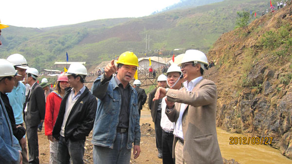 參加截流儀式的有越南工商部副部長(zhǎng)、世界銀行官員、越南銀行官員、業(yè)主MECO公司董事長(zhǎng)阮一平、安發(fā)水電投資股份公司董事長(zhǎng)阮平陽(yáng)和總經(jīng)理陳重朵等。我公司駐越南分公司經(jīng)理鄒春明和項(xiàng)目經(jīng)理夏愛(ài)民分別向參加儀式的嘉賓詳細(xì)介紹了工程施工情況,各方嘉賓亦對(duì)工程施工情況表示贊賞。越南工商部副部長(zhǎng)說(shuō),“南化二級(jí)電站是他管轄的十二個(gè)省市里進(jìn)度最快、質(zhì)量最好的項(xiàng)目”。