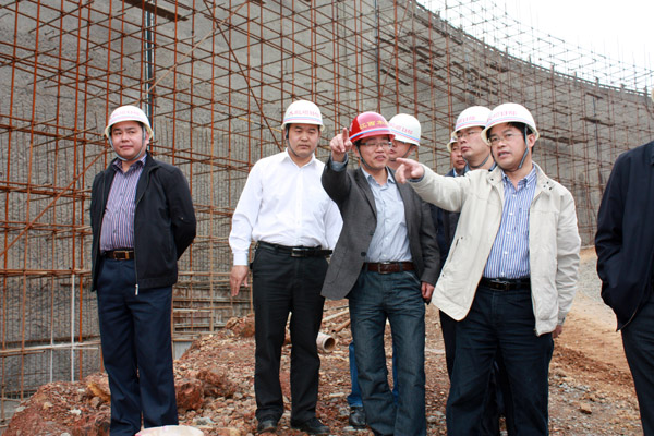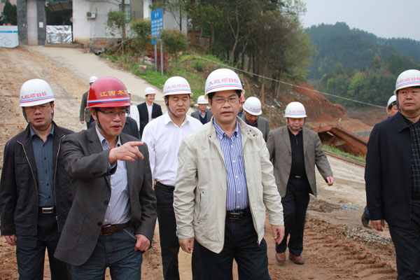 2012年4月6日,江西省水利廳副廳長廖瑞釗在宜春市副市長賴國根的陪同下,深入我公司承建的銅鼓縣大塅水庫除險(xiǎn)加固工程項(xiàng)目視察指導(dǎo)工作。