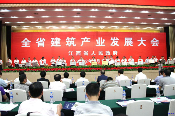 6月15日上午,江西省政府在南昌召開全省建筑產(chǎn)業(yè)發(fā)展大會,省政府朱虹副省長、蔡玉峰副秘書長,住房城鄉(xiāng)建設部總工程師陳重,建設廳領導張勇等出席了會議。省直有關單位負責人,各設區(qū)市、縣(市、區(qū))政府分管領導和建設局(建委)主要負責人,全省特、一級建筑企業(yè)和受表彰建筑企業(yè),部分勘察設計單位、監(jiān)理單位負責人近600人參加會議。