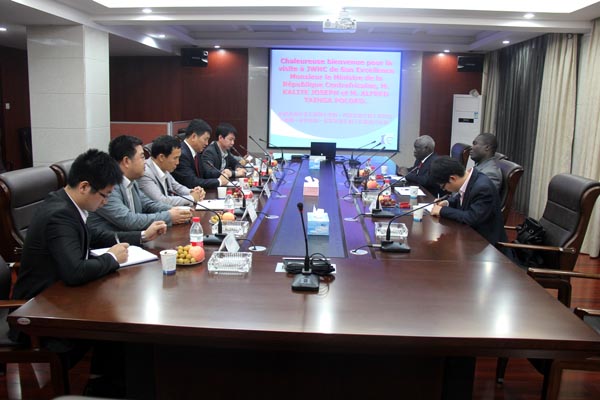 2012年10月30日,中非共和國(guó)通訊部長(zhǎng)TAINGAPOLOKO?ALFRED和住建部長(zhǎng)KALITE?JOSEPH應(yīng)邀訪問(wèn)公司,旨在加深雙方了解和建立互惠共贏的合作。
