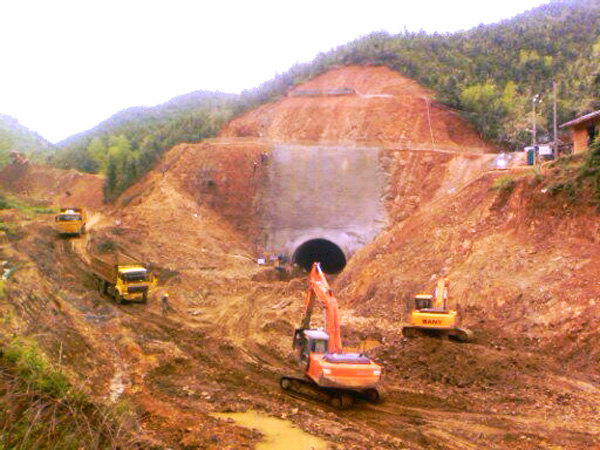 高倚四級水電站位于遂川江北支江高倚段,壩址座落在江西省遂川縣大坑鄉(xiāng),是贛江水系一級支流遂川江北支流梯級開發(fā)電站群中的一座。該水電站是一座以水力發(fā)電為主的低壩引水式小型水電站工程,安裝3臺軸流定槳立式水輪發(fā)電機(jī)組,總裝機(jī)容量7500千瓦,多年平均發(fā)電量2466萬千瓦時。水庫正常蓄水位134.5米,總庫容224.3萬立方米,主要由擋水壩建筑物、引水建筑物、廠房建筑物、防護(hù)工程及并網(wǎng)輸電線路五部分組成,為?。á瘢┬退娬竟こ?,工程等別為Ⅳ等。大壩壩軸線總長269米,引水隧洞總長1414.9米,隧洞為無壓城門形斷面,開挖斷面達(dá)60平方米(屬超大型斷面),引水隧洞進(jìn)口支洞長度42米。