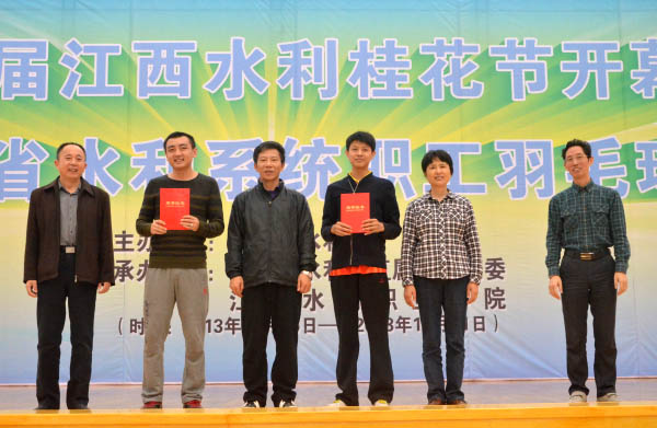 2013年10月20日,以“人水和諧,共筑中國(guó)夢(mèng)”為主題的第七屆江西水利桂花節(jié)暨全省首屆水利職工羽毛球賽在江西水利職業(yè)學(xué)院順利閉幕。省水利廳副廳長(zhǎng)羅小云、副巡視員周江紅、直屬機(jī)關(guān)黨委專職副書(shū)記張伯義、江西水利職業(yè)學(xué)院院長(zhǎng)曾亞?wèn)|出席閉幕式并為運(yùn)動(dòng)員頒獎(jiǎng);閉幕式由省水利廳直屬機(jī)關(guān)工會(huì)副主席池曉虹主持。
