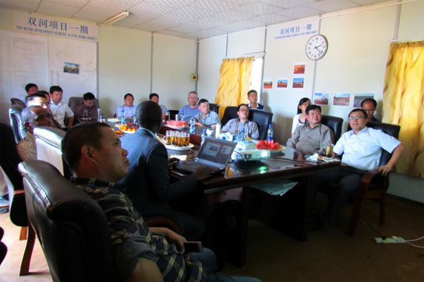 下午2時,在雙河一期會議室聽取了業(yè)主Centum投資集團(tuán)代表做的題為“投資、發(fā)展、效益”的演講。隨后,中航技肯尼亞分公司副總經(jīng)理吳迪做了補(bǔ)充,詳細(xì)介紹了雙河項目的股權(quán)結(jié)構(gòu),深入分析了雙河項目的投資環(huán)境,并對收益前景做了合理的預(yù)測。董事長王元旦表示對雙河項目充滿信心,相信與中航技的合作能帶來雙贏,希望雙方增強(qiáng)交流,進(jìn)一步深化投資合作,實現(xiàn)互利共贏、共同發(fā)展的新局面。