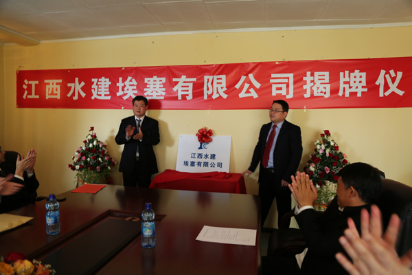 2015年4月26日埃塞當(dāng)?shù)貢r(shí)間上午10點(diǎn),江西水建埃塞有限公司在埃塞舉行揭牌儀式。公司董事長王元旦、總經(jīng)理徐洪良、副總經(jīng)理兼海外公司執(zhí)行董事張周平、副總經(jīng)理兼海外公司總經(jīng)理黃鄭民、副總經(jīng)理王俊華等領(lǐng)導(dǎo)及在埃員工參加了揭牌儀式,公司董事長王元旦和埃塞有限公司總經(jīng)理王毓平共同為埃塞公司揭牌并致辭。