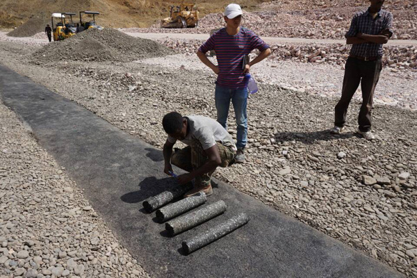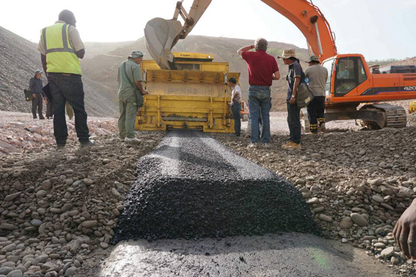 公司高度重視Wolkite瀝青混凝土芯墻的建設(shè),成立了以黃生寶為經(jīng)理的項目組領(lǐng)導(dǎo)班子,選派了一批技術(shù)過硬、經(jīng)驗豐富、善于學(xué)習(xí)的技術(shù)和操作人員,并從國內(nèi)專門聘請從事該方面工作的專家親赴現(xiàn)場進行技術(shù)指導(dǎo)和把關(guān)。在公司董事會的正確領(lǐng)導(dǎo)下,項目部全體成員緊緊圍繞著Wolkite瀝青混凝土芯墻項目全力施工。本著特事特辦的原則,國內(nèi)后勤組緊急采購發(fā)送了一大批施工設(shè)備,為項目開好頭打下了堅實的基礎(chǔ)。為了優(yōu)質(zhì)高效地完成任務(wù),項目組全體人員精誠團結(jié)、夙興夜寐,不計白天黑夜,不管分內(nèi)分外,取得的成果得到了業(yè)主和監(jiān)理的肯定。從制定施工方案和技術(shù)指標(biāo),到裝配實驗儀器和施工設(shè)備,從悶熱的室內(nèi)配合比工作,到烈日炎炎下的現(xiàn)場施工,無不凝結(jié)著大家的智慧與汗水。