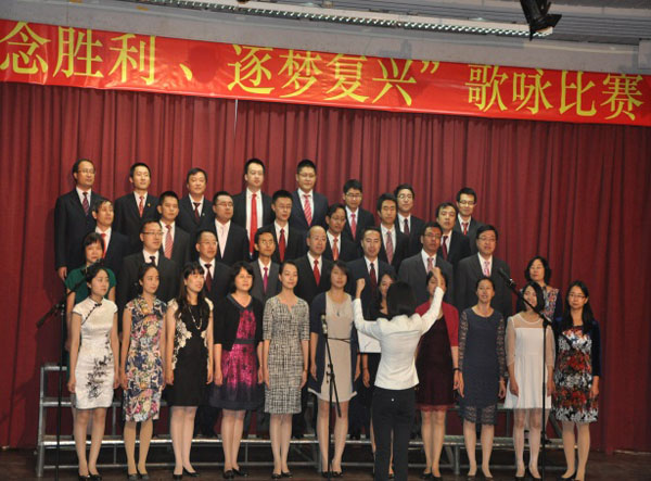集團(tuán)資訊 9月24日,為慶祝中國人民抗日戰(zhàn)爭及暨法西斯戰(zhàn)爭勝利70周年,并歡慶中秋、國慶佳節(jié),江西省水利水電建設(shè)有限公司肯尼亞分公司參加了由中國駐肯尼亞大使館及肯中經(jīng)貿(mào)協(xié)會舉辦的第二屆合唱比賽。本屆比賽共有大使館、中航國際、中油石油、江西水建等十六家中資公司的幾百名人員參賽。