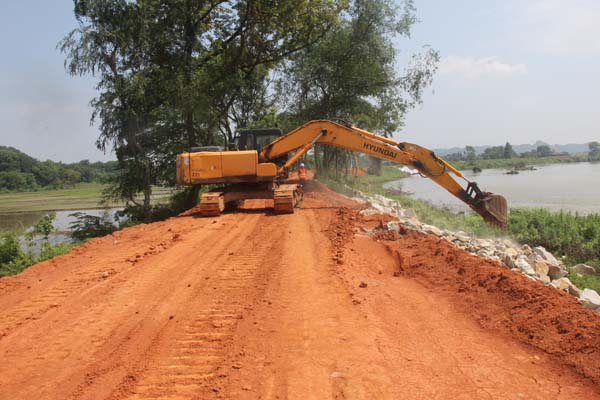 本次演練是以貴溪市新田聯(lián)圩防洪工程施工項目所在地連日持續(xù)大雨天氣,引發(fā)羅塘河河水暴漲,導(dǎo)致樁號K10+247~K11+000段大堤出現(xiàn)塌方、開裂現(xiàn)象,啟動防汛應(yīng)急預(yù)案為背景,開展的防汛演練。演練科目包括:險情報告、啟動應(yīng)急預(yù)案,組織應(yīng)急救援隊伍投入搶險,堤腳拋石固腳、堤身砂卵石及土方填筑、堤身迎水面鋪設(shè)防沖彩條布、編織袋裝砂石堤身加固等內(nèi)容。演習完成后,參與演習的主要成員,對本次演習效果進行了評價,為公司《防汛應(yīng)急預(yù)案》的修訂完善作了充分的基礎(chǔ)工作。