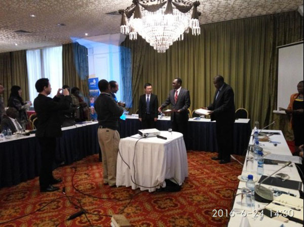 董國鋒處長及肯尼亞商務(wù)部首席秘書Dr Chris Kiptoo共同頒發(fā)此次培訓(xùn)的結(jié)業(yè)證書