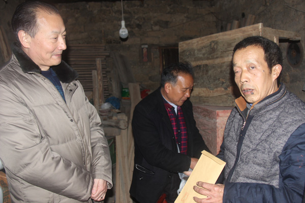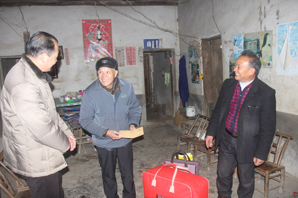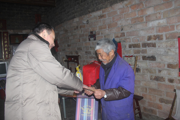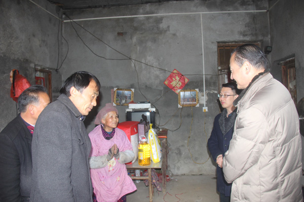 在貧困戶羅華妹家里,當(dāng)老人接過大米和食用油等慰問物品后,頓時(shí)眼含淚花,激動(dòng)的拉著史主席的手說:“這么冷的天,你們能來看我這個(gè)老太婆,我真的很高興,共產(chǎn)黨的政策真好!”,史主席鼓勵(lì)羅華妹說:“要堅(jiān)定信心,黨的政策很好,我們也會多想一些能改變家庭生活和增加收入的辦法,你們家里要積極配合黨委政府和村委會的工作,爭取早日脫貧致富。”