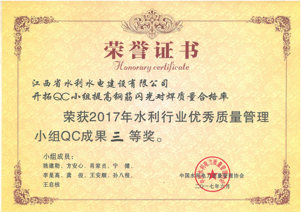 近日,中國水利電力質(zhì)量管理協(xié)會(huì)水利分會(huì)在湖南省長(zhǎng)沙市,舉辦了2017年水利行業(yè)優(yōu)秀QC小組成果發(fā)表會(huì),并在本次發(fā)表會(huì)上發(fā)布了206項(xiàng)QC成果。本次成果發(fā)表會(huì)上,我公司發(fā)表的4項(xiàng)QC成果中, 1項(xiàng)QC成果獲一等獎(jiǎng),2項(xiàng)QC成果獲二等獎(jiǎng),1項(xiàng)QC成果獲三等獎(jiǎng)。公司已連續(xù)3年獲得水利行業(yè)優(yōu)秀QC小組成果獎(jiǎng)。