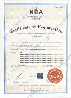 2013年3月份,肯尼亞國(guó)家建筑局(National Construction Authority)發(fā)出公告,要求所有在肯尼亞的建筑企業(yè),必須在肯尼亞建筑局注冊(cè)登記,提交相關(guān)資料,評(píng)出公司資質(zhì)等級(jí)。