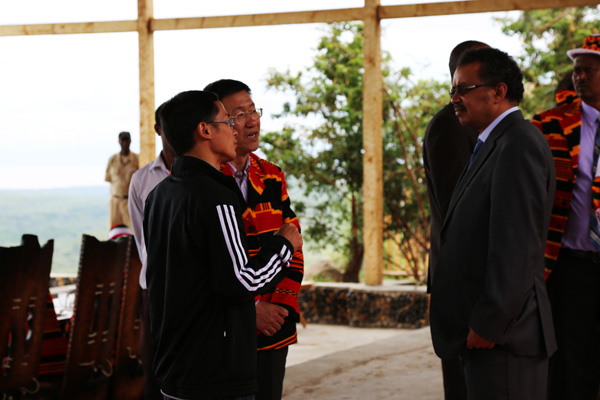 公司副總經(jīng)理王俊華對(duì)使館領(lǐng)導(dǎo)不辭辛苦來到施工現(xiàn)場(chǎng)看望一線員工表示感謝,并就我公司在埃塞俄比亞的發(fā)展情況向覃參贊作了介紹。他表示,江西水建作為中資企業(yè)的一員,一直服從使館領(lǐng)導(dǎo)統(tǒng)一指揮,以高品質(zhì)的工程質(zhì)量、過硬的施工技術(shù),將一流的工程項(xiàng)目呈獻(xiàn)給埃塞人民。