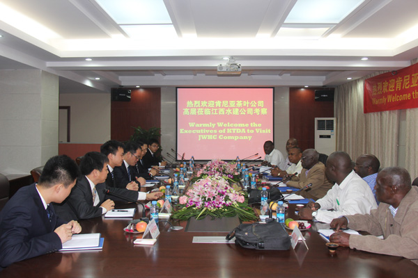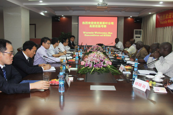 集團(tuán)資訊2014年9月上旬,肯尼亞茶葉發(fā)展有限公司董事Philip Kibirech NG’Etich先生一行七人應(yīng)邀來我公司參觀考察,旨在加深雙方了解和建立互惠共贏的合作。總經(jīng)理徐洪良代表公司對他們的到來表示熱烈歡迎,總會(huì)計(jì)師王義生、總工程師胡鴻煌及海外公司相關(guān)負(fù)責(zé)人參加了會(huì)見并陪同肯尼亞客人參觀了公司總部各部門。
