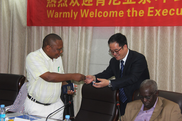 總經(jīng)理徐洪良與肯尼亞茶葉公司董事秘書約翰互換名片