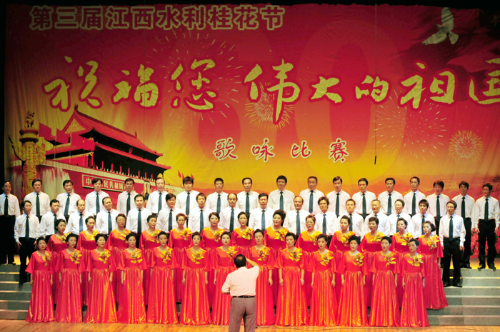 2009年9月25日,第三屆江西水利桂花節(jié)“祝福您,偉大的祖國”歌詠比賽在省話劇團藝術(shù)大廳隆重舉行,江西省水利廳以及廳直屬單位共10個代表隊參加了比賽。