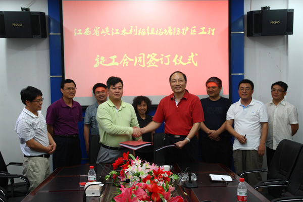 日前,我公司收到江西省峽江水利樞紐工程建設(shè)總指揮部中標(biāo)通知,成功中標(biāo)峽江水利樞紐工程柘塘防護(hù)工程。5月11日上午,公司董事長(zhǎng)總經(jīng)理王元旦代表公司與業(yè)主簽訂施工合同協(xié)議書(shū),合同額為8741.44萬(wàn)元。