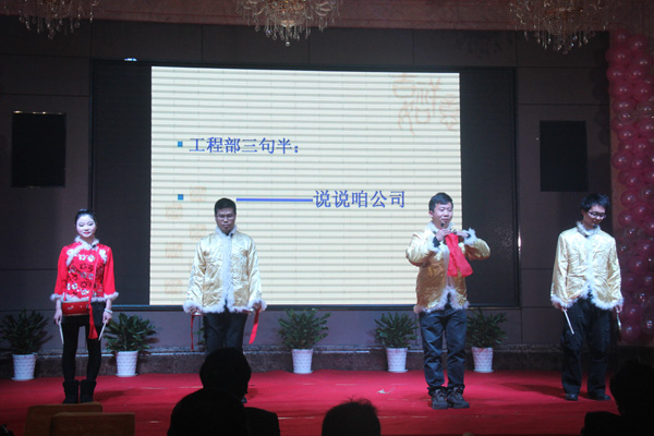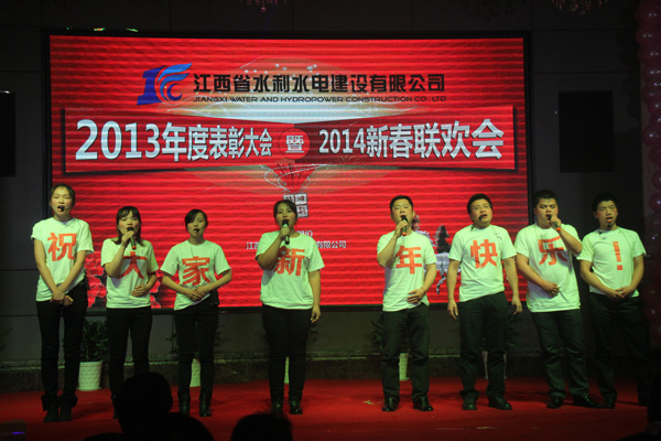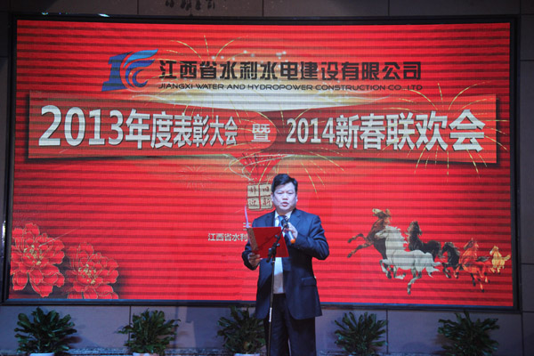 在隨后的新春聯(lián)歡會上,王總發(fā)表了熱情洋溢的新年賀詞,并代表公司董事會和領(lǐng)導(dǎo)班子,向全體員工、支持公司改革發(fā)展的離退休老同志和員工家屬,以及仍堅守在工作崗位的海內(nèi)外一線員工致以節(jié)日的祝福和誠摯的問候。王總在致詞中說,2013年是公司發(fā)展史上不平凡的一年,在公司董事會的正確領(lǐng)導(dǎo)下,全體員工以企業(yè)為家,團結(jié)一心、不畏艱難,腳踏實地、開拓創(chuàng)新,沿著年初制定的各項工作目標努力奮進。公司各項事業(yè)繼續(xù)保持蓬勃發(fā)展的良好形勢,朝著質(zhì)量好、品牌優(yōu)、市場廣的集團型企業(yè)方向邁進。2013年,公司開拓進取、勇于突破,準確定位、大膽決策,利用資本運作境內(nèi)外項目,以投融資帶動市場,在國內(nèi)嘗試承接BT項目,國外則跨行業(yè)進入投資領(lǐng)域,利用投資經(jīng)營提升企業(yè)競爭力。王總指出,公司在2013年取得了一系列優(yōu)秀的成績,兩項省級工法和兩項部級工法通過評審,內(nèi)部管理制度日益健全,爆破資質(zhì)、城市園林綠化資質(zhì)通過審核,在國際工程建設(shè)領(lǐng)域發(fā)展迅速,被譽為江西水利行業(yè)走向世界、開拓國際市場的排頭兵。