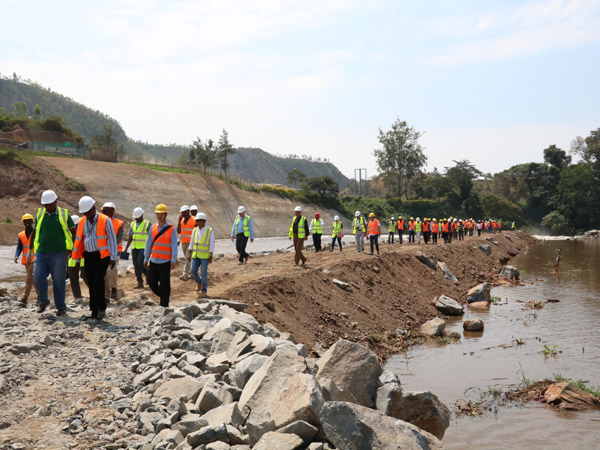 6月6日,世行官員、業(yè)主委員會、爭端解決委員會、監(jiān)理等項目相關方一行50余人來到項目現(xiàn)場,對項目進度及ESHS方面進行現(xiàn)場檢查。檢查團先后來到大壩圍堰區(qū)、取水口、廠房、支洞、廠房住宅區(qū)和項目營地進行檢查。世行對項目總體進度表示滿意,同時,希望承包商繼續(xù)加快進度,特別針對關鍵節(jié)點進行資源合理配置,爭取項目早日建成發(fā)電。