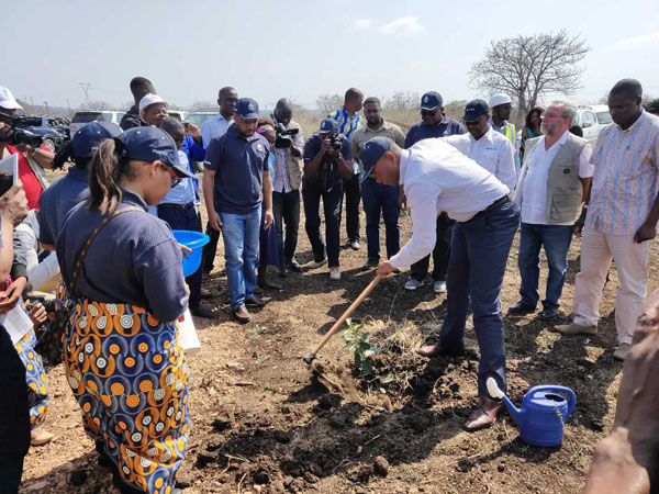 典禮當天,莫桑比克公共工程、住房和水利部部長Machatine閣下參觀了在建現(xiàn)場,親手種下代表綠色與生命的常青樹,并發(fā)表重要講話。他指出,Corumana水庫是首都人民的生命之源,同時也具有防洪和提供清潔電力的功能,是國家的重點民生工程。他希望中國企業(yè)能和業(yè)主、監(jiān)理等各方一起努力,精誠團結(jié)、優(yōu)質(zhì)高效完成這個具有歷史意義的項目,為首都人民的福祉做出貢獻。