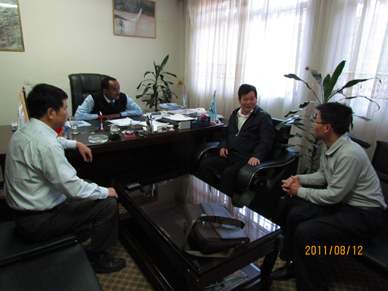 2011年8月9日至8月13日,董事長(zhǎng)、總經(jīng)理王元旦來(lái)到公司埃塞俄比亞分公司進(jìn)行考察,并督導(dǎo)當(dāng)?shù)爻薪ǖ膰?guó)際工程施工管理工作。公司副總經(jīng)理張周平、黃鄭民及財(cái)務(wù)部吳紹明經(jīng)理陪同考察。