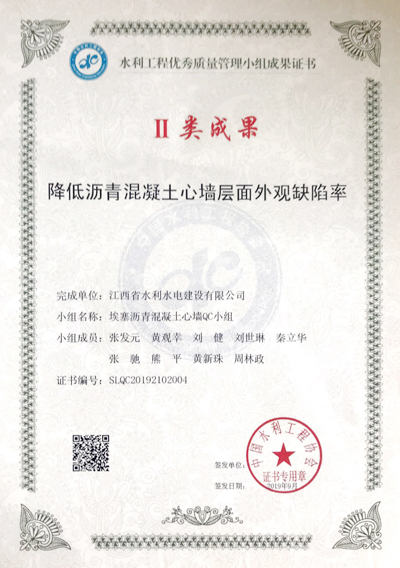 本次大會參報成果690項,涉及全國水利施工、設(shè)計、監(jiān)理、咨詢等187家單位。經(jīng)資料評價和現(xiàn)場發(fā)表評價,最終確定522項水利工程優(yōu)秀QC成果。由我公司廖坊灌區(qū)QC小組編寫的《降低拱式渡槽拱肋懸鏈線高度偏差》和埃塞Wolkite瀝青混凝土心墻項目QC小組編寫的《降低瀝青混凝土心墻層面外觀缺陷率》兩項QC成果榮獲2019年水利工程優(yōu)秀QC成果二等獎(II類獎)。