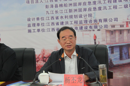 省水利廳副廳長楊丕龍在會上作了重要講話,他對九江長江江心洲固岸應(yīng)急度汛工程棉船洲1標(biāo)和江新洲1標(biāo)進展予以充分肯定,并代表省水利廳黨委向有關(guān)單位和部門對水利建設(shè)的關(guān)心和支持表示衷心感謝,向奮戰(zhàn)在固岸應(yīng)急度汛工程建設(shè)一線的參建各單位和工作人員表示親切慰問。