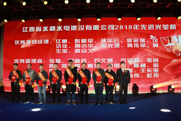 隨后,公司董事長王元旦等領(lǐng)導(dǎo)向潦河灌區(qū)解放閘壩除險加固工程設(shè)計施工總承包(EPC)項目、盧旺達(dá)RUSUMO瀑布水電站項目等16個優(yōu)秀團(tuán)隊,彭和平、黃生寶等10位優(yōu)秀項目經(jīng)理,張姝、張聰?shù)?0位優(yōu)秀管理者和應(yīng)怡超、程春鋒等40位優(yōu)秀員工予以表彰。感謝他們在過去的2019年為江西水建發(fā)展所作出的貢獻(xiàn)。