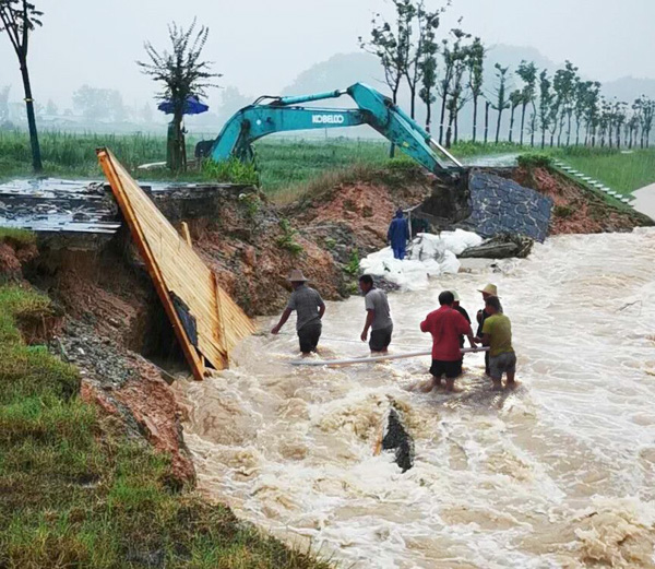 暴雨肆虐,洪災(zāi)無情。7月8日,雨勢加大,險(xiǎn)情加重,出現(xiàn)漫堤、農(nóng)田被淹等險(xiǎn)情,國家財(cái)產(chǎn)和人民群眾的生命安全正面臨嚴(yán)重威脅,危難當(dāng)前彰顯擔(dān)當(dāng),公司副總經(jīng)理曾朝文、總經(jīng)理助理杜凌冒雨在抗洪前線親自指揮,不顧個(gè)人安危,哪里有險(xiǎn)情就奮戰(zhàn)到哪里,經(jīng)過公司救援隊(duì)伍連續(xù)10余小時(shí)的奮勇?lián)寫?zhàn),險(xiǎn)情得到基本控制,確保了農(nóng)田和橋梁安全。