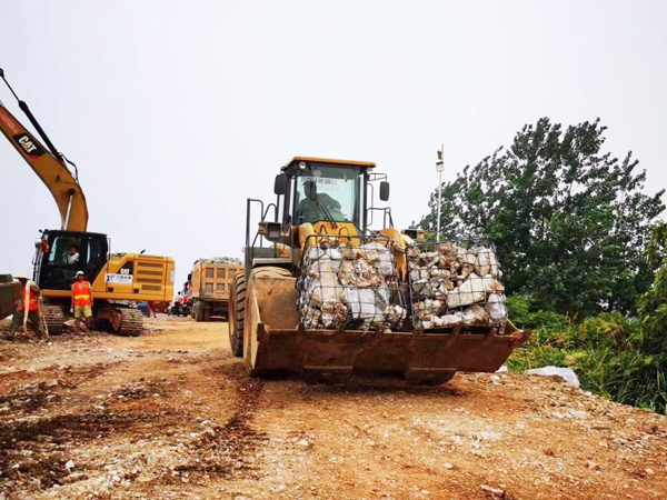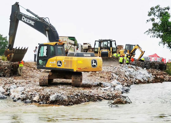 7月14日14時(shí),封堵作業(yè)正式啟動,南北兩岸同時(shí)進(jìn)占施工。然而,困難層出不窮:道路不平,存在積水,影響車輛通行;一線搶險(xiǎn)人員的生活保障還不夠完善,吃住條件艱苦,防雨防曬防蚊設(shè)施簡陋,無便攜照明設(shè)施;砂石骨料耗量巨大,但存在配額限制,獲取來源較少。但現(xiàn)場人員攻堅(jiān)克難,積極與政府、當(dāng)?shù)丶捌h(yuǎn)廠商溝通,解決了人員基本需求和石料問題,并在當(dāng)日順利鋪石20米,邁上堅(jiān)實(shí)的第一步。