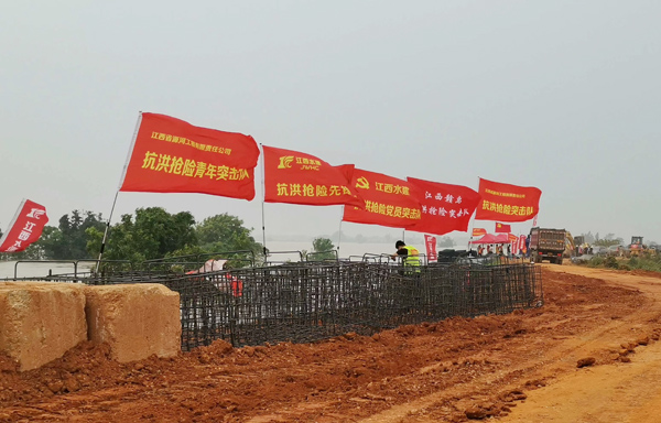 7月12日晚,九江市永修縣三角聯(lián)圩發(fā)生潰堤,決口長度100多米,洪水淹沒了圩堤內(nèi)紅旗村、永豐墾殖場等部分地區(qū)。公司在接到省防指和水利廳下達(dá)的防汛任務(wù)后,積極響應(yīng),緊急抽調(diào)并組建了一支90余人的專業(yè)隊(duì)伍,并迅速落實(shí)機(jī)械設(shè)備。由公司黨委書記、董事長王元旦親自帶隊(duì),星夜馳援一線。