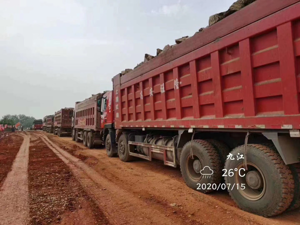 7月15日凌晨,貨車連夜運(yùn)送石料入場,現(xiàn)場材料調(diào)度人員徹夜不休,僅借助貨車大燈照明,順利完成調(diào)度工作。當(dāng)日,決口成功封堵70米。