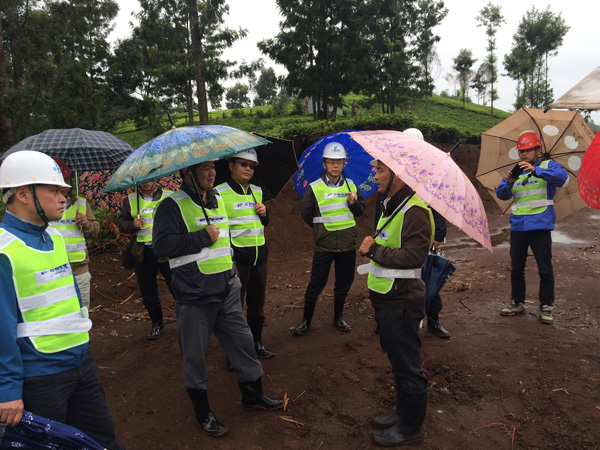王董事長冒雨在EPC項目施工現場視察