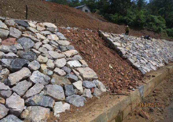 擋墻砌筑應(yīng)分層,每一砌筑層擺石時(shí)均應(yīng)座漿,隨鋪漿隨砌筑。嚴(yán)禁石塊大面無漿直接貼靠。混凝土必須用振搗器逐縫振搗。當(dāng)豎縫寬度在5cm以上時(shí),可填漿后塞片石。嚴(yán)禁先堆砌石塊再用膠結(jié)料灌縫。