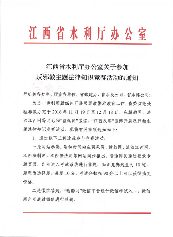 2016年開展反邪教知識競賽的通知